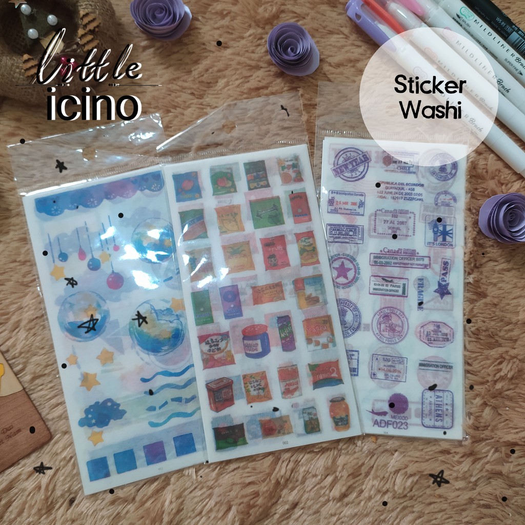 6 sheets sticker dengan bahan washi yang lucu banget buat ditempel di journal/scrapbook kamu!