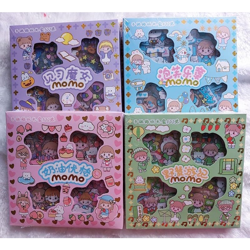 Sticker Waterproof Sticker Momo dapat box isi 100 lembar