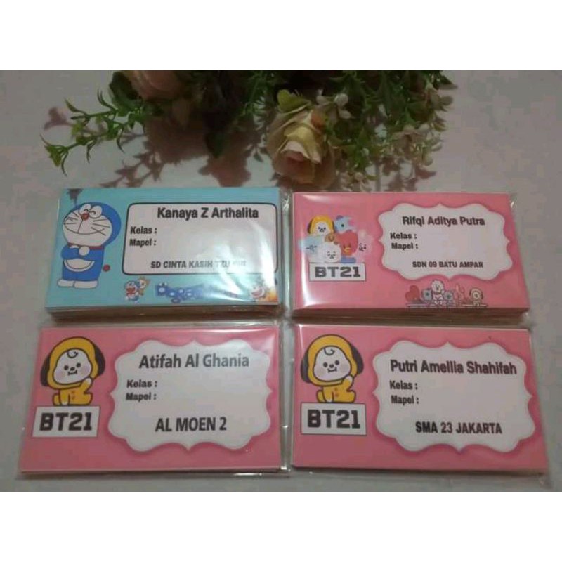 Sticker label buku sekolah, bisa request nama , sekolah dan juga tema kesukaan si kecil. isi per pak 24 lembar
