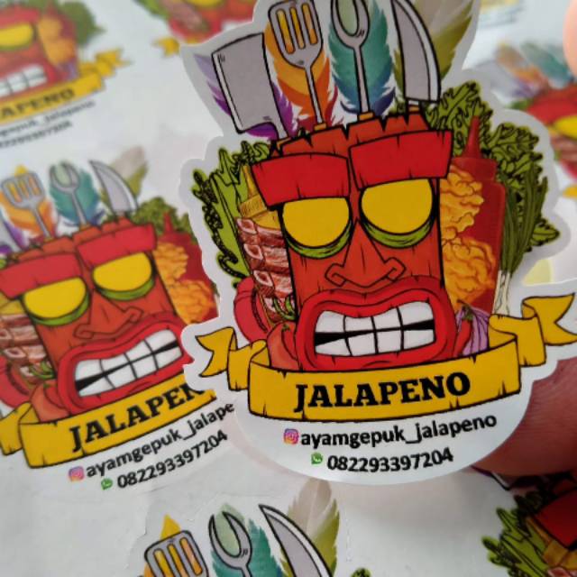 Stiker cutting untuk label makanan atau usaha,praktis tidak perlu gunting lagi. Bonus FREE DESAIN