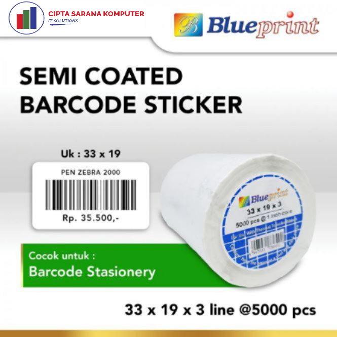 Stiker Barcode Label / Sticker Barcode Thermal BLUEPRINT Ukuran 33mm X 19mm