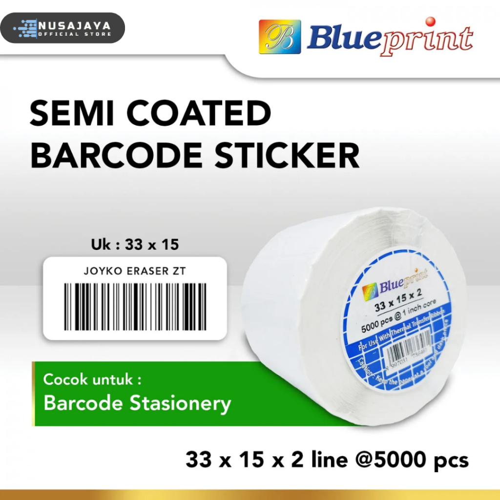 Deskripsi STICKER LABEL BARCODE BLUEPRINT 33X15X2 SEMI COATED [ISI 5000PCS]