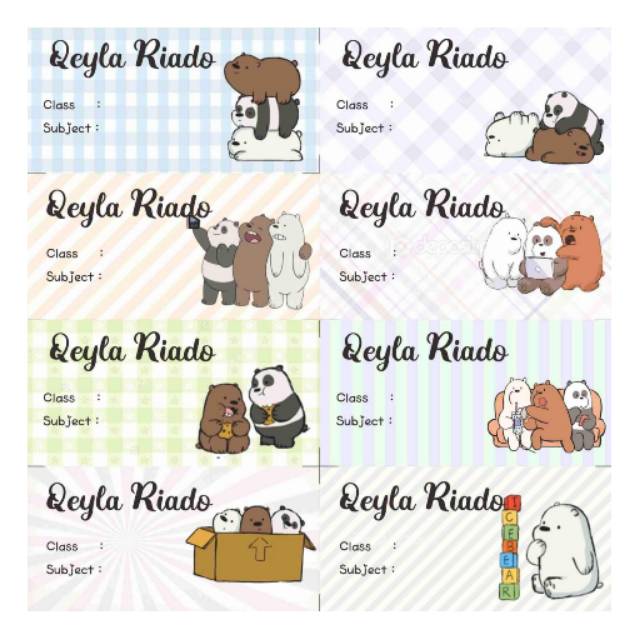 ukuran 8x4cm >> 47pc/set (format lengkap nama.class.subject.school)