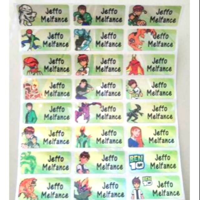 Sticker nama waterproof Ben 10