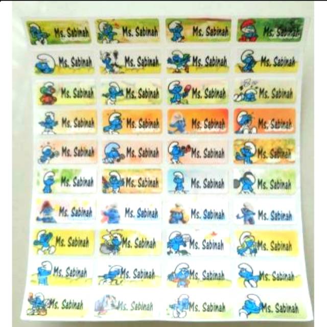 Sticker nama waterproof Smurf