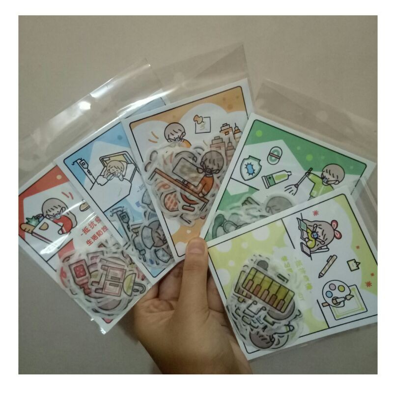 Stiker lucu berbahan washi, motifnya tentang kegiatan selama new normal. Isinya ada banyak jadi worth it