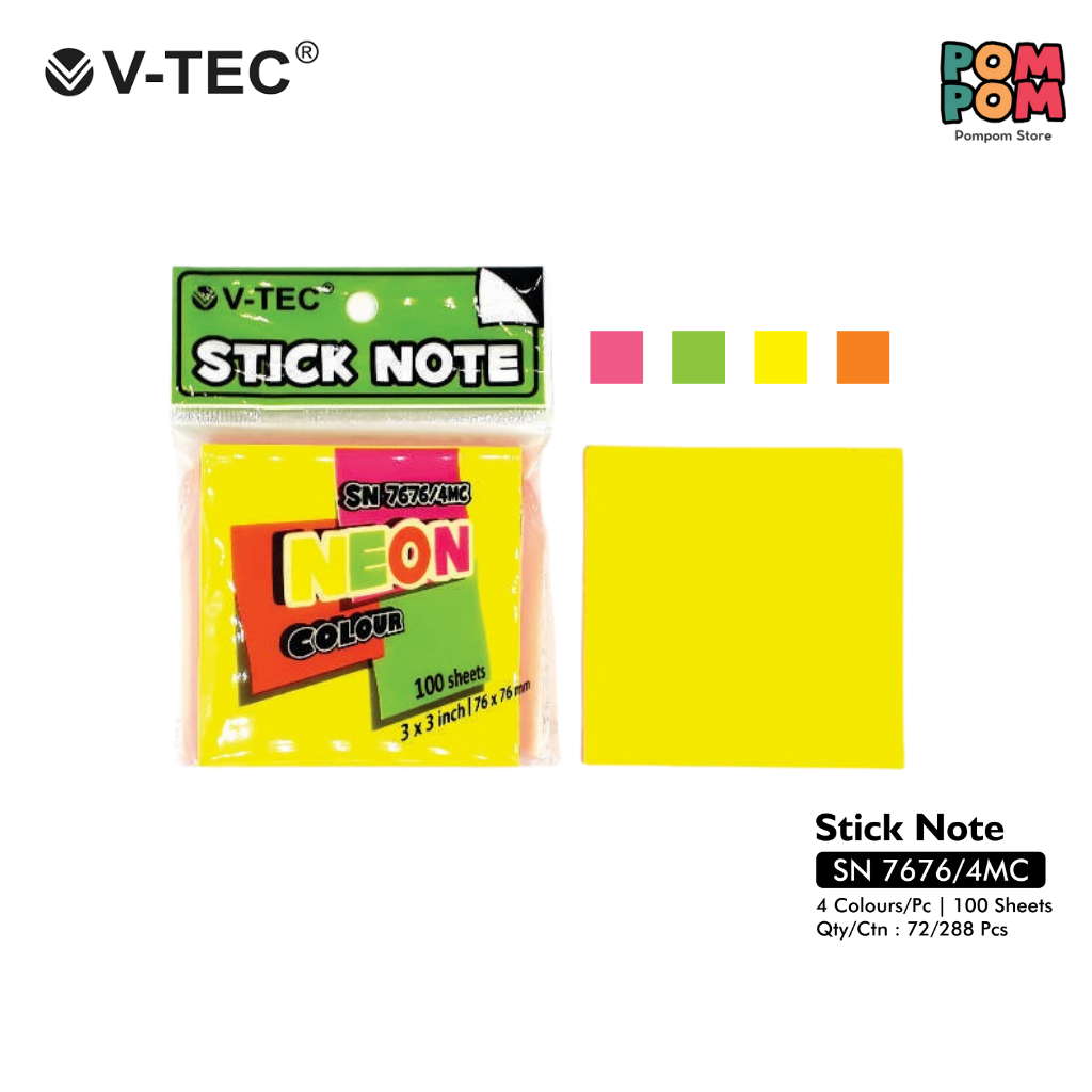 Sticky Note Neon Colour V-Tec SN 76101/4MC