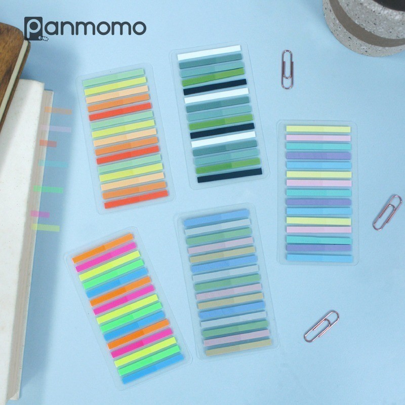 Sticky label DAN highlighter? Yup, panmomo Sticky Text Highlighter Strips ini berbentuk label berwarna agak transparan, artinya dapat kamu gunakan untuk meng-highlight kalimat pada catatan atau buku yang sedang kamu baca. Berbeda dengan highlighter biasa menggunakan tinta, cara ini tidak meninggalkan bekas di kertas, jadi dapat dilepas-tempel sesuai kebutuhan.