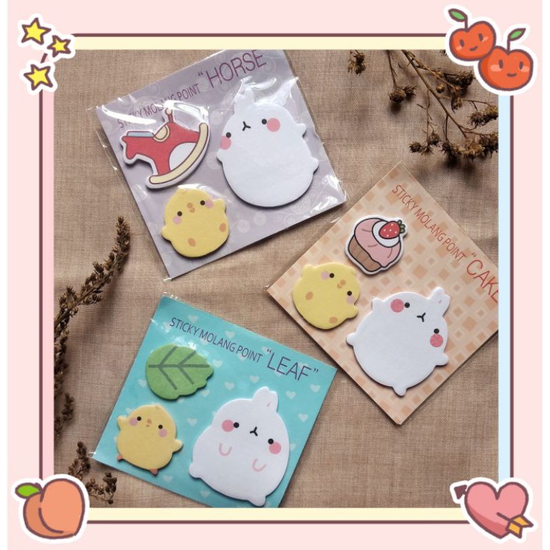 Nggak tau kenapa apapun yang berhubungan dengan karakter Molang ini pasti lucu-lucu, seperti sticky notes ini. Ukurannya yang mini yaitu 8,5 x 8 cm dan cute membuat sticky note ini mudah dibawa kemana-mana.
