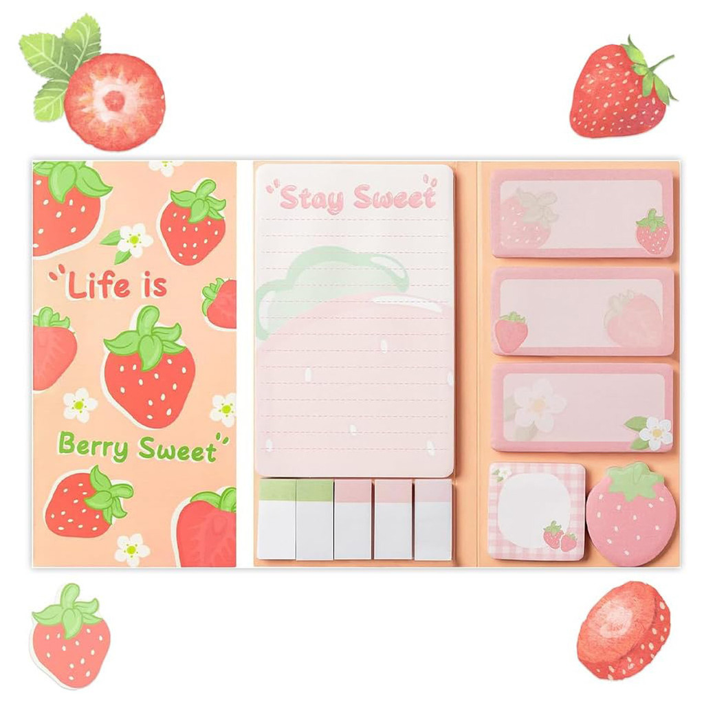 Sticky Notes Set, 550 Strawberry Pattern Self-Adhesive Summer Sticky Notes, Summer Fruit Divider Labels, Sticky Notes Set