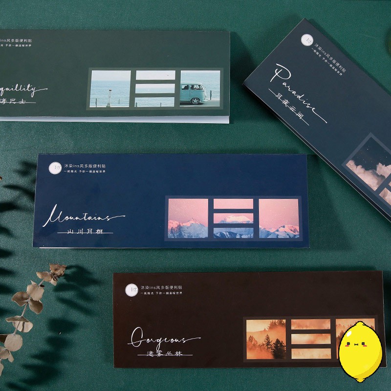 Satu set sticky notes dalam bentuk yang praktis untuk kamu selipkan ke dalam tas. Di dalam bisa kamu temui sticky notes berbentuk kotak yang cocok sebagai catatan singkat dan juga sticky notes berbentuk label untuk memberi label dan menandai bagian buku. Pilih dari 4 varian full color bertema pemandangan yang memukau.