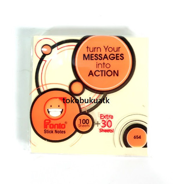 Sticky Notes Pronto 654 - adalah kertas memo yang dapat digunakan untuk menuliskan ide-ide singkat atau poin-poin penting yang ingin dicatat dan disimpan untuk referensi. Karena memiliki lapisan lem khusus, Sticky Notes ini dapat ditempelkan dan dilepaskan berulang kali tanpa merusak permukaan.