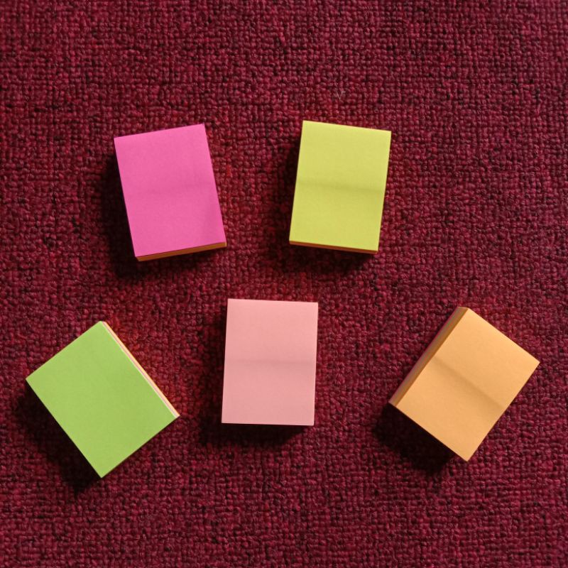 keuntungan : sticky notes kuat menempel, tidak mudah lepas, dan memiliki banyak warna dalam satu produknya.
