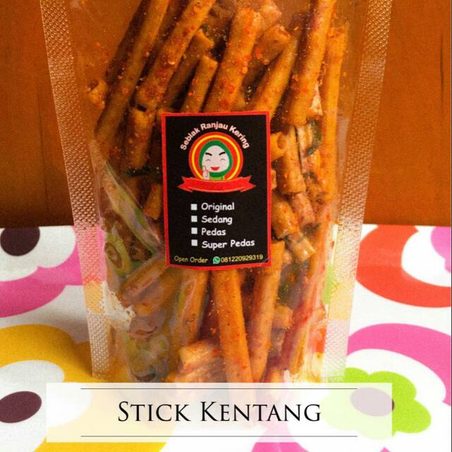 Stik kentang dengan bumbu rempah dan tingkat kepedasan sedang, cocok untuk teman ngemil