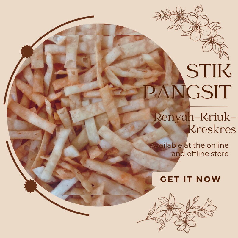 Stick pangsit, gurih nikmat. Cocok dimakan sendiri atau bareng teman asal rela bagi-bagi, sop, bubur, bakso, atau dimakan langsung sebagai cemilan.