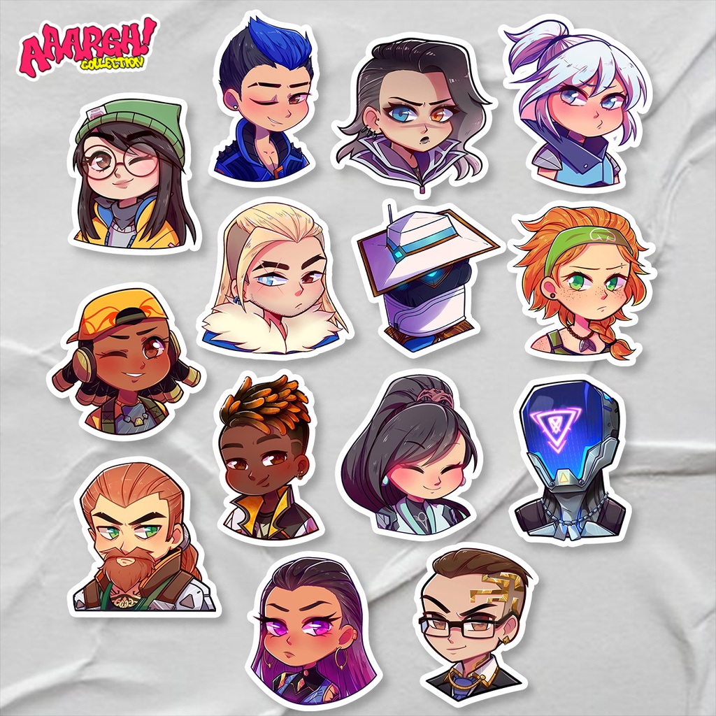 Sticker EXCLUSIVE Agent VALORANT Yoru, Killjoy, Sage, Phoenix, Skye, Jett, Raze, Reyna, Breach, Chamber, Kay/o, Fade dengan Design yang Unik, Keren & Lucu ✅