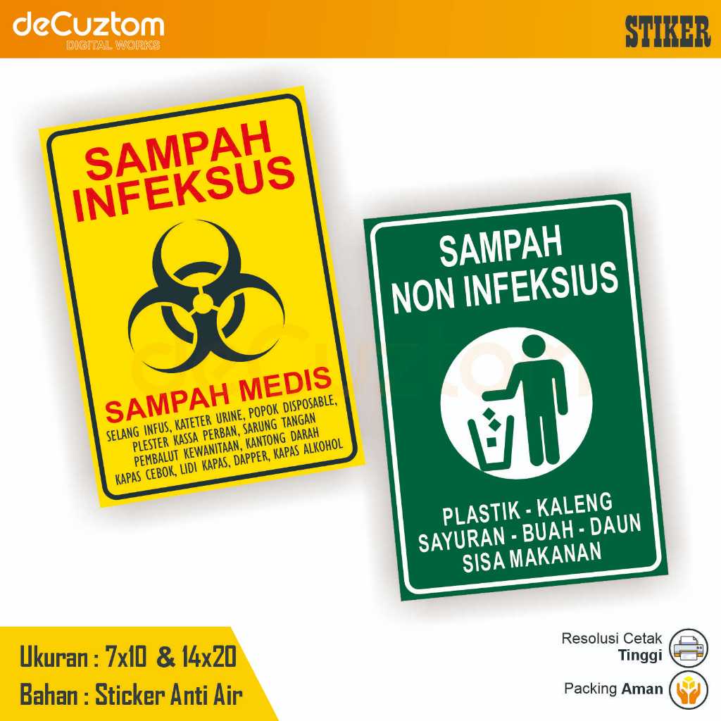 Menjaga keamanan dan kebersihan di lingkungan medis adalah hal yang sangat penting. Stiker Tanda Infeksius & Non Infeksius hadir sebagai solusi praktis untuk memberikan penanda yang jelas dan tahan lama di berbagai fasilitas kesehatan, seperti rumah sakit, klinik, laboratorium, dan tempat pengelolaan limbah medis.