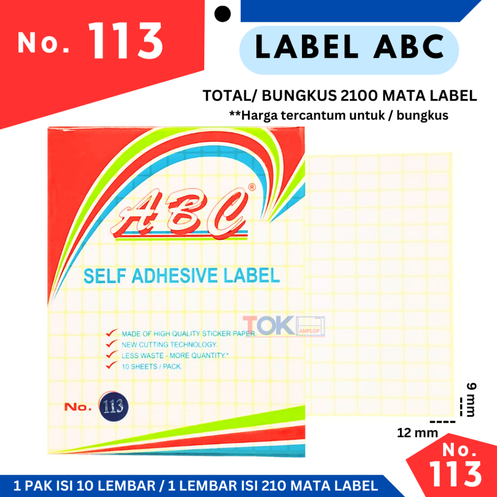 ABC Label No. 113 Size : 9 x 12 mm