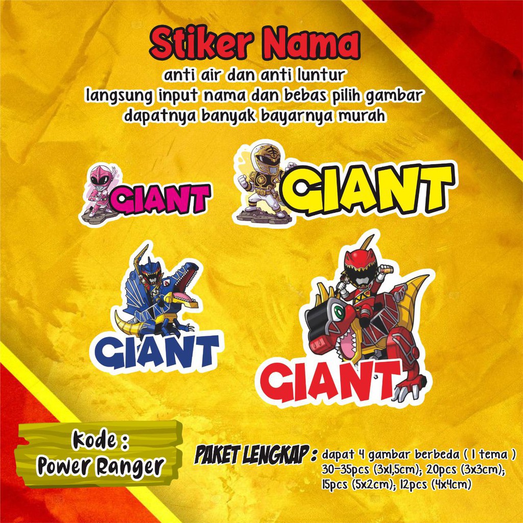 Stiker Label Custom Nama dan Karakter Power Ranger / BTS / Spiderman