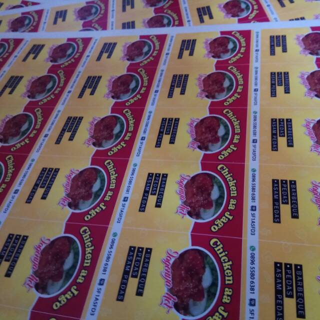 - Jumlah stiker tergantung ukuran yg akan di cetak. Misal ukuran 9 x 5cm, maka dalam 1 lembar 45 x 31 bisa muat 25 - 30 pcs stiker. Semakin besar ukurannya, maka semakin sedikit jumlahnya.