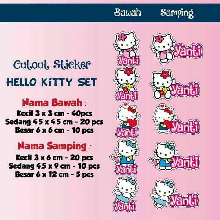 Stiker Label Nama Waterproof Cutout Hello Kitty (Set)