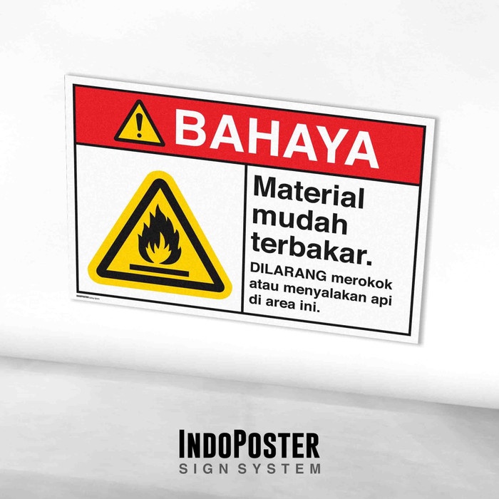 Stiker Label Safety Sign Rambu K3 ANSI Material Mudah Terbakar (S)