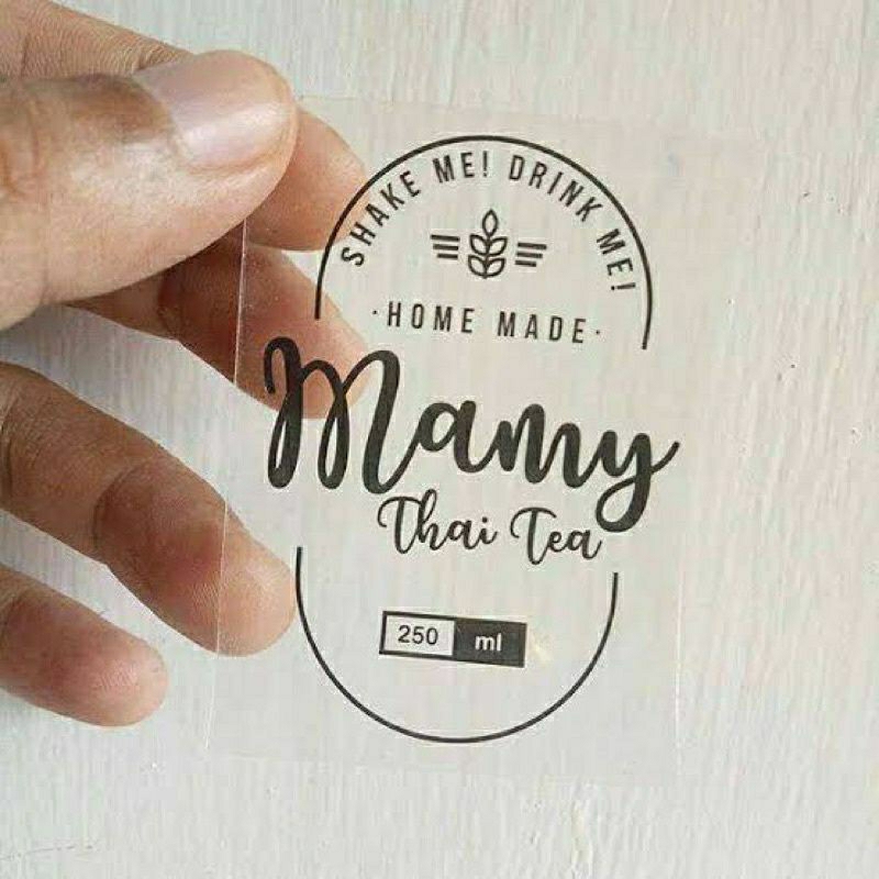 stiker transparan yang memberikan kesan elegan dan profesional cocok untuk logo atau label produk agar tampilan lebih manimalis