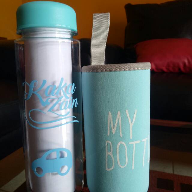 Stiker nama untuk di botol. Bisa Request tulisan ataupun logo. Warna dan bahan bisa pilih.