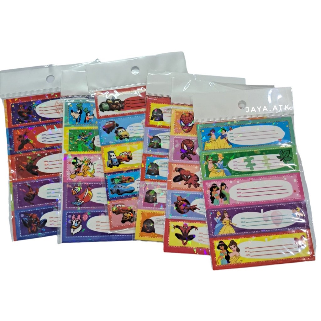Stiker Nama Buku Tulis Anak - Sticker Nama Motif Karakter Lucu (Per Pack)