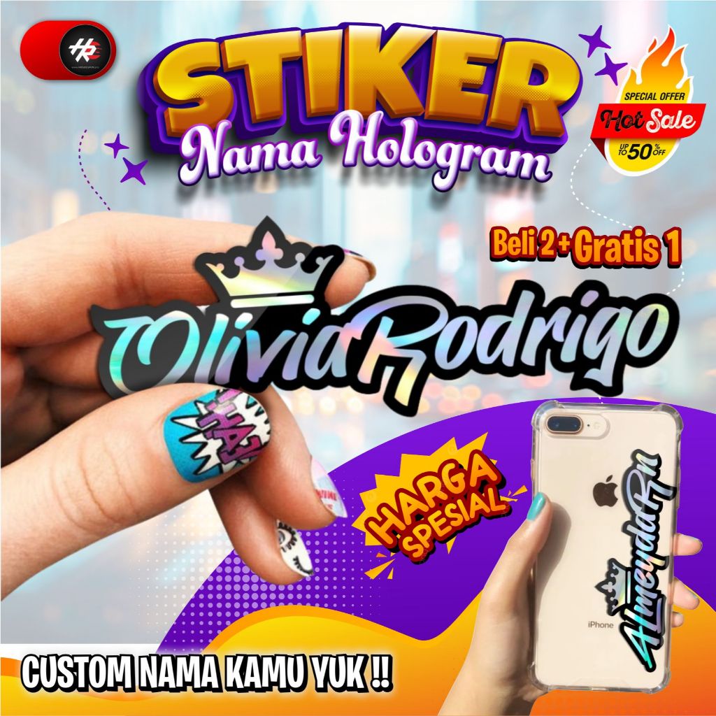 Stiker custom nama atau logo hologram ini adalah pilihan sempurna untuk memperindah Kendaraan, Barang dan Dekorasi Anda.