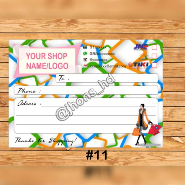 Pada saat check out diharap mencantumkan; nama olshop, contact, dan pilihan kurir yang ingin dicantumkan pada sticker.