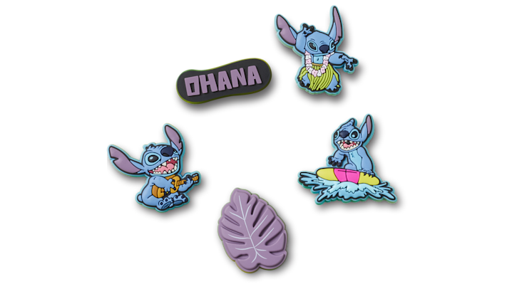 Show off your love of Disney’s mischievous and adorable Experiment 626 with this fun set of Jibbitz™ charms! Each pack includes 5 charms celebrating the tropical homeland of Lilo and Stitch. Not a toy. Not intended for children under 3 years of age.