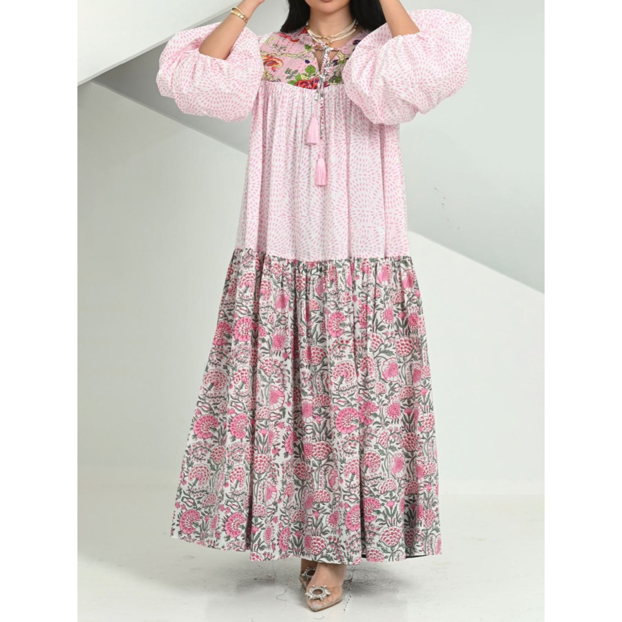 women dresses,stylish contrast floral print puff sleeve robe dress