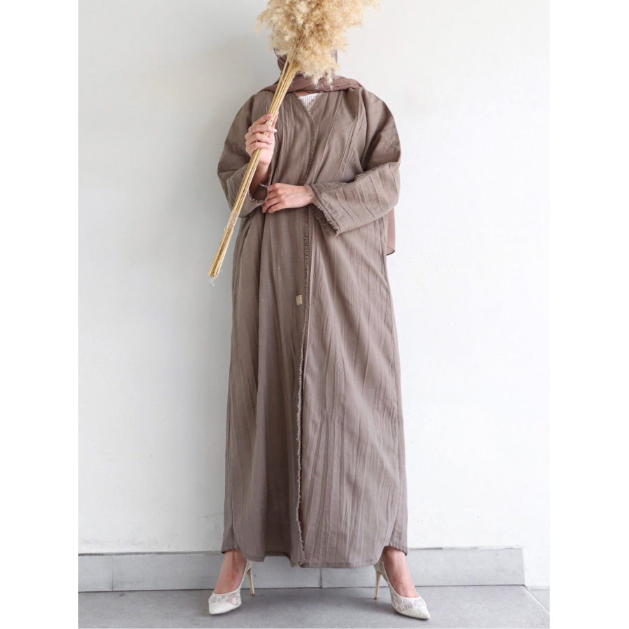 women dresses,stylish embossed linen solid color robe
