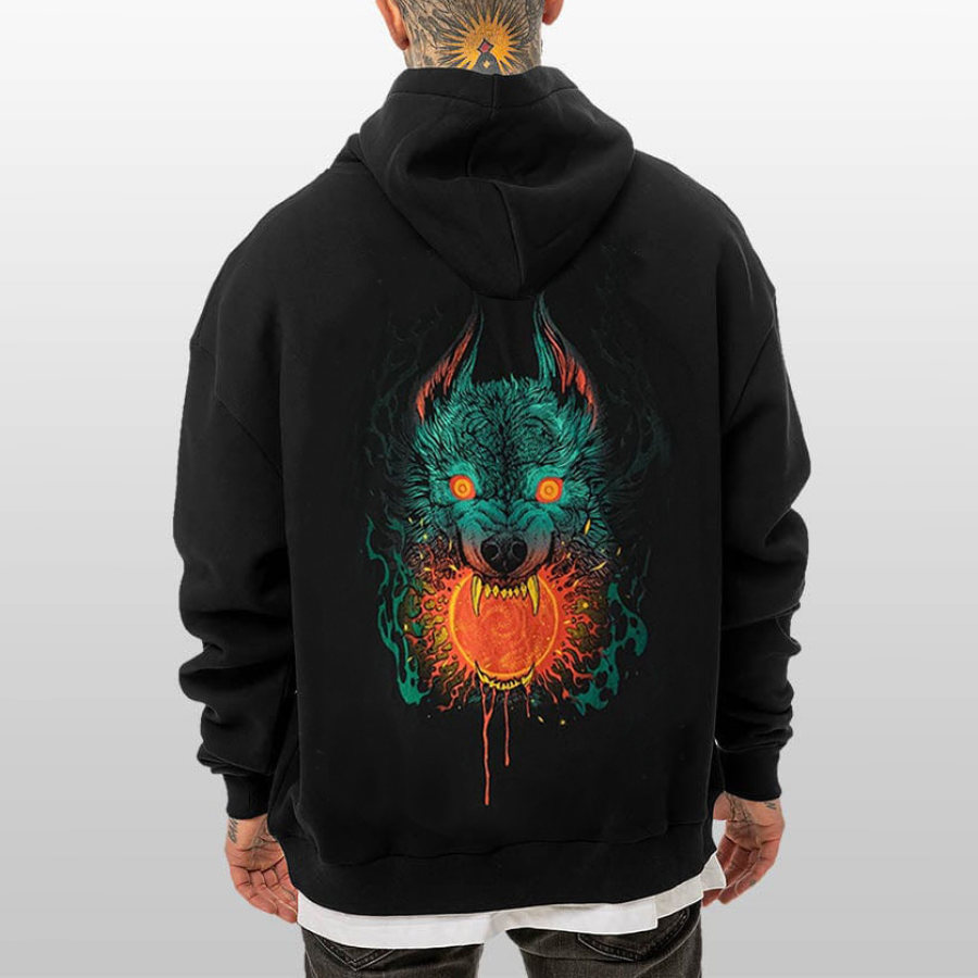 Sudadera Con Capucha Extragrande Dark Wolf Sun Para Hombre