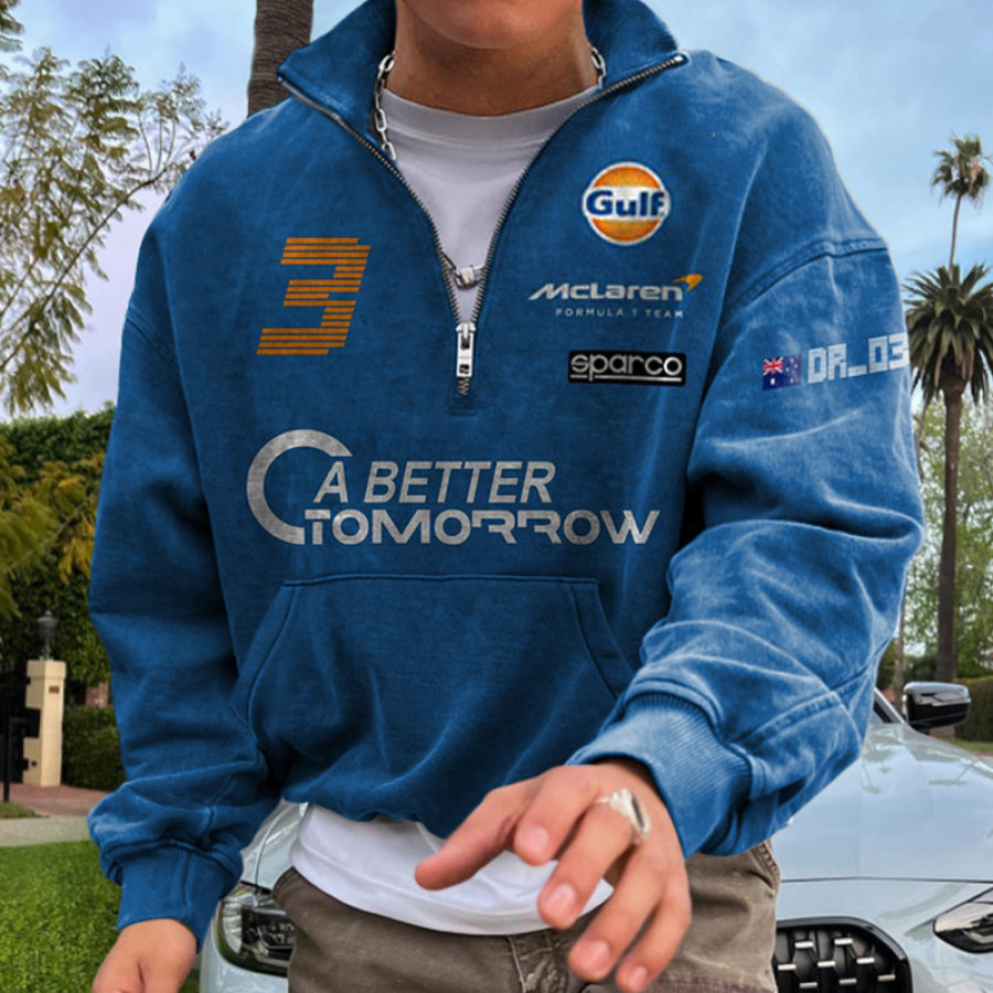 Sudadera De Hombre Extragrande Con Estampado Vintage Racing Azul