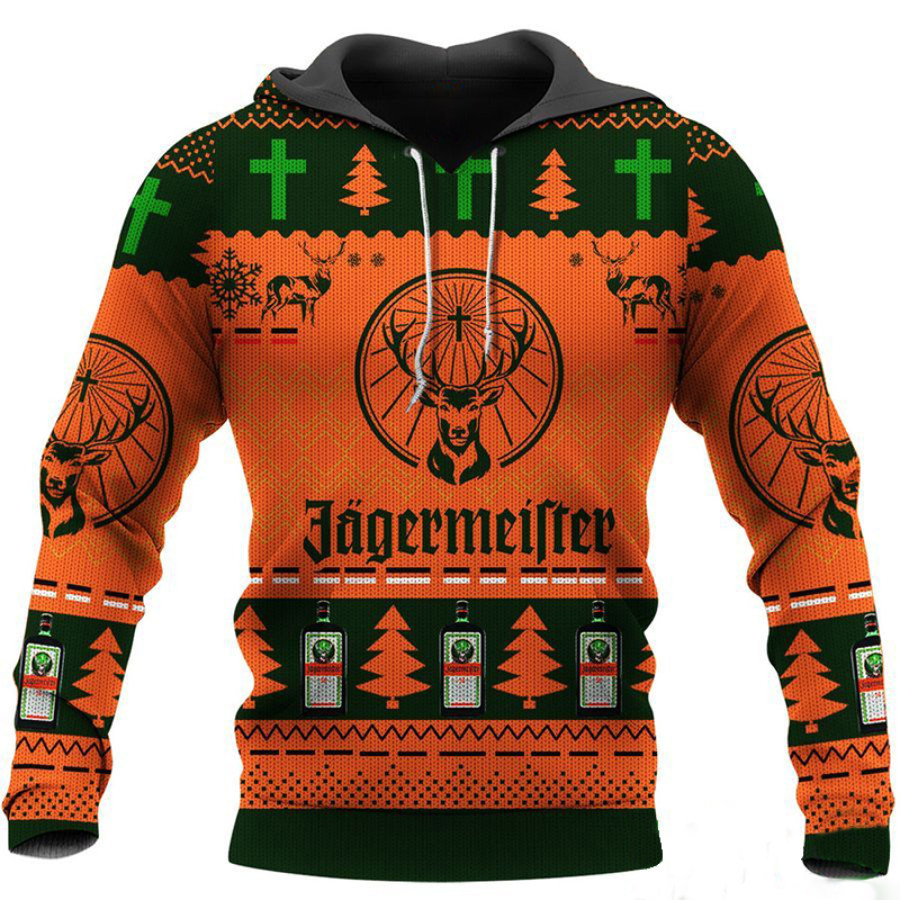 sudadera,sudadera fea navideña con estampado de alces retro