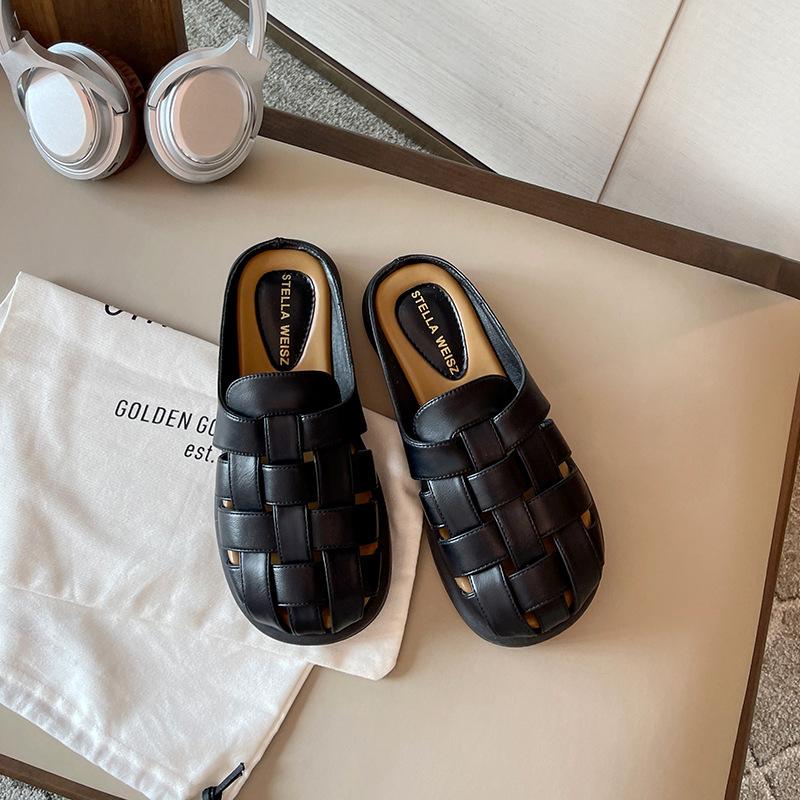 Suding женские туфли полые плетеные тапочки для улицы 2025 лето новинка римские ретро баотоу полутапочки 40 чёрный