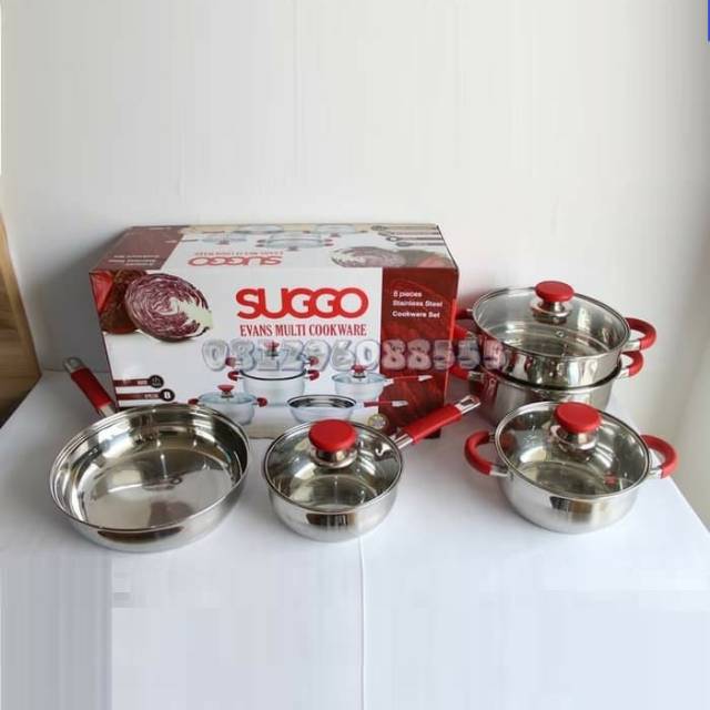 Suggo Panci Set Evans 8 Pcs Handle Merah