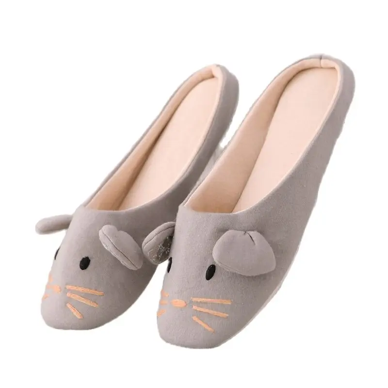 Suihyung/женская домашняя обувь; Сезон осень-зима; Теплые домашние тапочки с мягкой подошвой; Женские шлепанцы для спальни; Милые тапочки с рису...