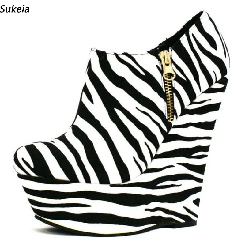 Sukeia женские туфли-лодочки ручной работы на платформе с боковой молнией на танкетке, на высоком каблуке с круглым носком, красивая обувь для вечеринок в стиле зебры, размер США, большие размеры 5-20