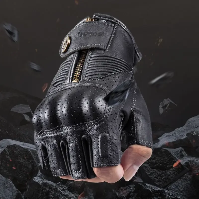 Sulaite летние кожаные мотоциклетные перчатки с половиной пальца, прочные велосипедные перчатки без пальцев в стиле ретро, мужские и женские велосипедные перчатки с половиной пальца