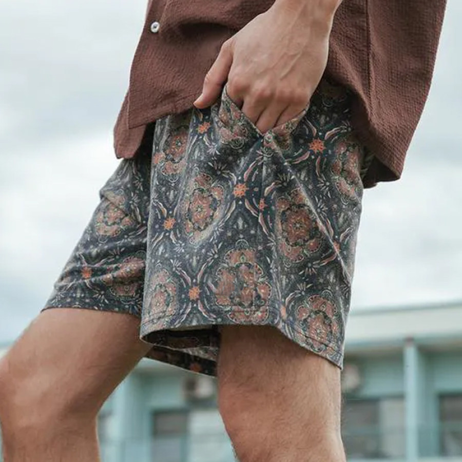 Summer Retro Kaleidoscope Pattern Surf Shorts