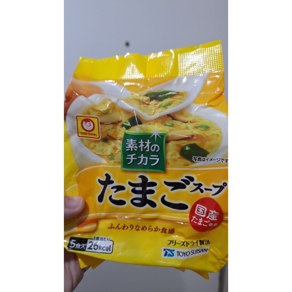 Tamago Soup" (たまごスープ) dalam bahasa Jepang, yang berarti sup telur. Produk ini dikemas dalam bentuk kering beku (freeze-dried) dan mudah disiapkan hanya dengan menambahkan air panas. Kemasan ini berisi 5 sachet, dengan setiap sachet mengandung 26 kalori. Sup ini menonjolkan rasa telur yang lembut dan ringan, serta menggunakan telur ayam lokal Jepang.