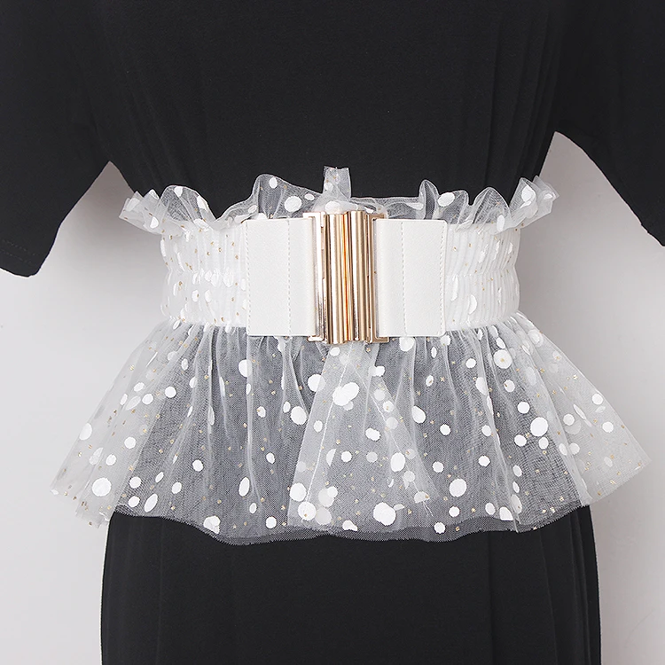 SuperAen 2021 Новая мода волнистый точка сетка оборки свободная талия металлическая пряжка широкий пояс Талия печать черный и белый пояс для женщ...