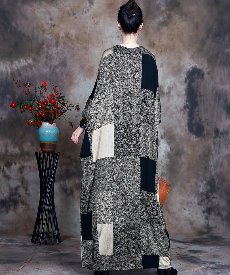 SuperAen 2021 Осенние новые клетчатые свободные платья свободного размера плюс с О-образным вырезом и рукавами «летучая мышь» трапециевидные пов...