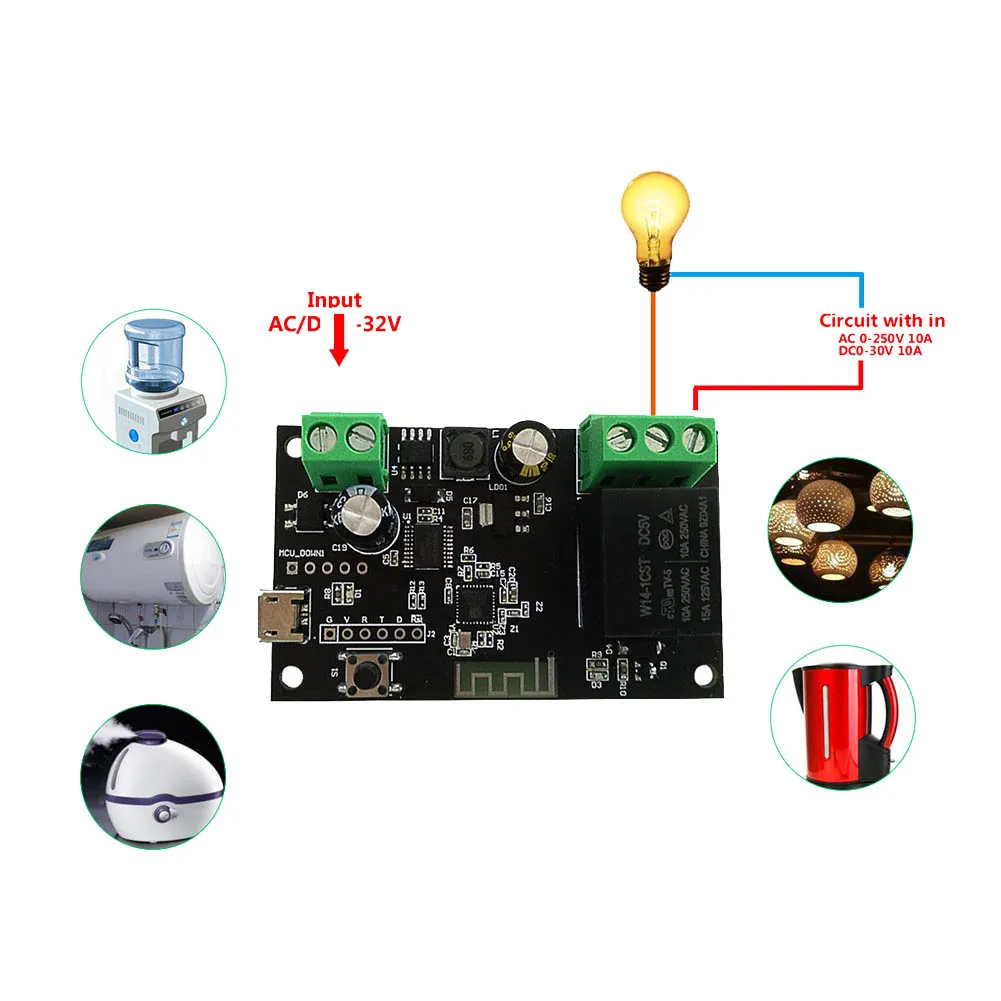 Superior-Tuya Wifi Switch Single Way Switch Relay Module Point Automatic Locking Mobile Phone APP Remote Control Remote Voice