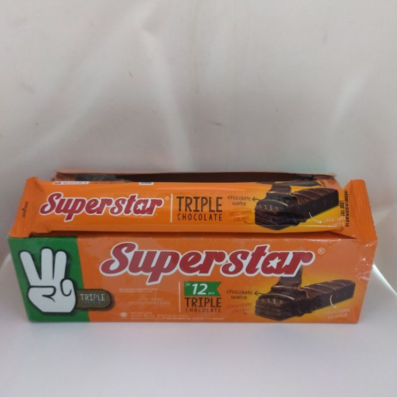 Superstar wafer Stick Cokelat merupakan salah satu varian wafer stick dari Mayora yang dibuat dengan memadukan resep rahasia original dari ahli pembuat cokelat dan bahan-bahan pilihan berkualitas untuk menghasilkan wafer stick renyah yang memiliki kemurniaan, kelembutan, dan kesempurnaan rasa. Wafer stick ini terdiri dari kombinasi wafer krispi, krim cokelat premium yang nikmat, dan susu lezat di setiap gigitannya, memberikan sensasi menikmati coklat premium yang tak terlupakan. Diproduksi dengan teknologi modern dengan bahan-bahan berkualitas sehingga menghasilkan wafer stick sebagai camilan yang pas dan bermutu baik.