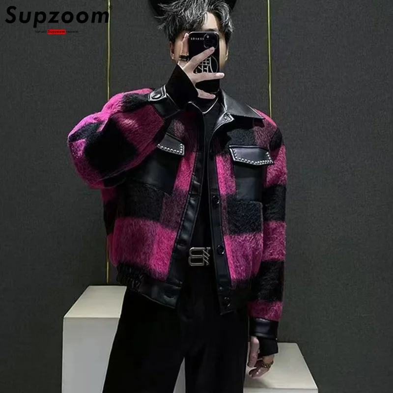 Supzoom Новое поступление, модная осенне-зимняя повседневная однобортная куртка с отложным воротником, толстая шерстяная клетчатая куртка в стиле ретро в стиле пэчворк