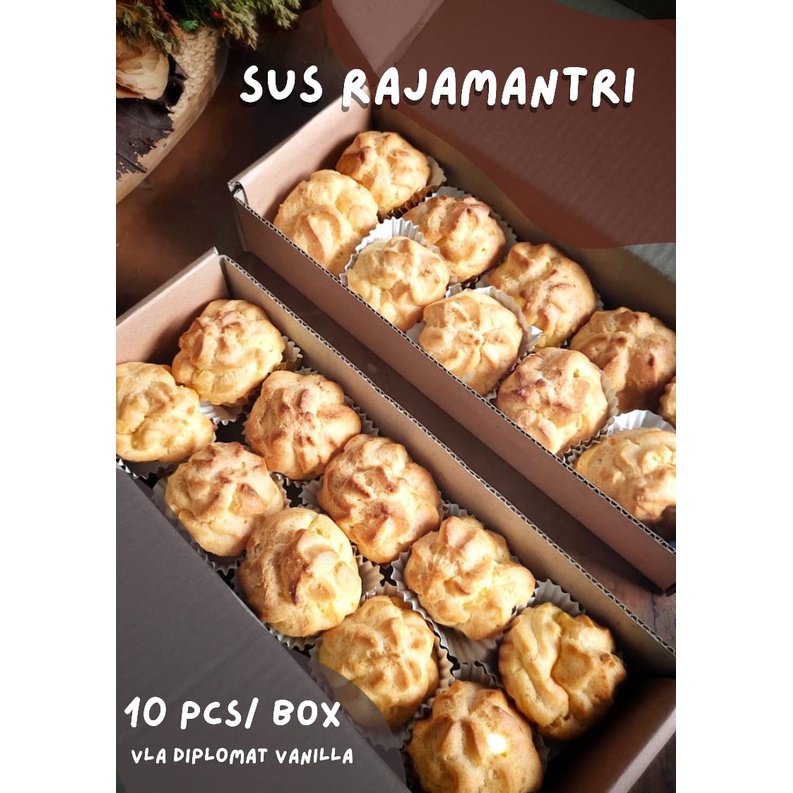 Kue sus dengan filling vla diplomat vanilla, yaitu vla dengan tambahan whip cream menjadikan rasanya lebih ringan.